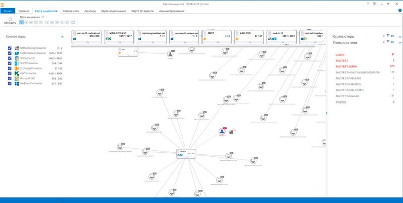 Система устанавливает взаимосвязи между безобидными на первый взгляд событиями и выявляет комплексные инциденты. Например, сброс пароля учетной записи инженера-конструктора – сам по себе не говорит об инциденте. Но если это произошло ночью и сразу после сброса сотрудник подключил съемный носитель – это уже вызывает подозрения и может свидетельствовать о промышленном шпионаже.