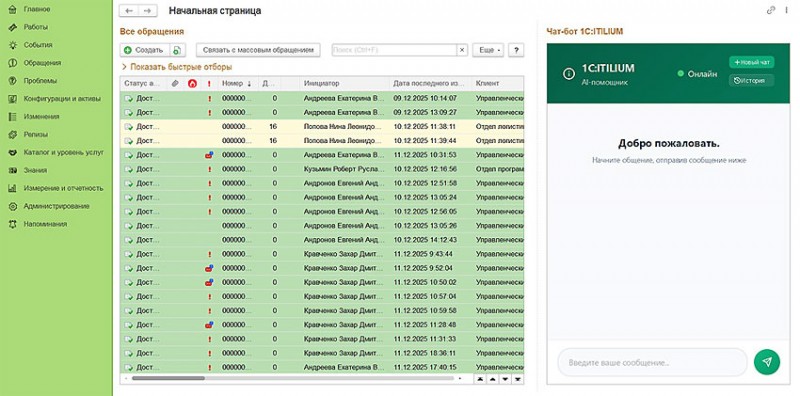 Cкриншот начальной страницы системы 1С:ITILIUM